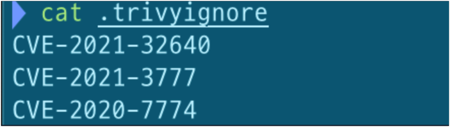 예외처리는 간단하다. github action의 yml 파일이 존재하는 위치에 .trivyignore 파일이 있으면 된다.