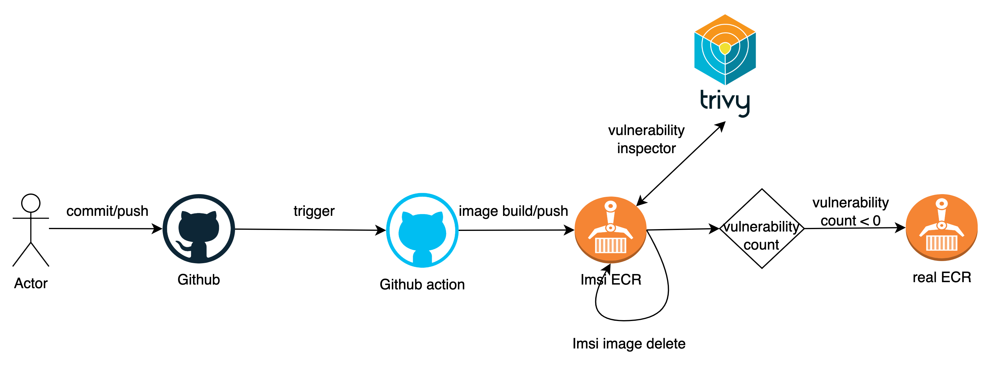Trivy는 기본적으로 Image가 있어야 점검할 수 있기에 본래의 ECR로 image push 이전에 imsi repo에서 점검하는것으로 했다.