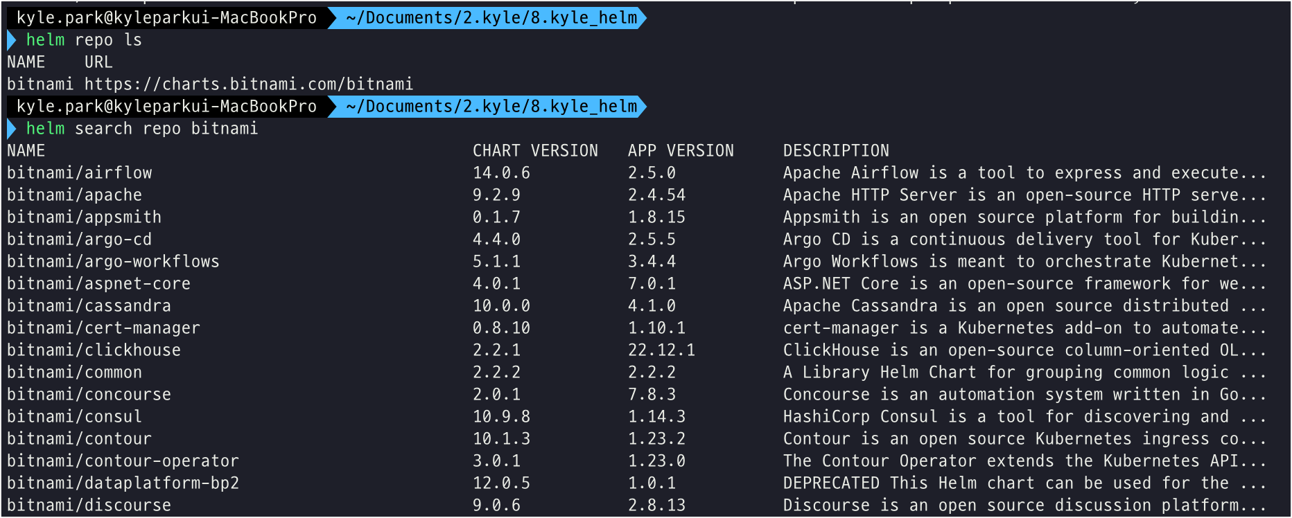 기본적으로 bitnami repo가 일반화 되어 있으며 아래와 같이 다양한 환경의 Helm chart를 제공해준다.