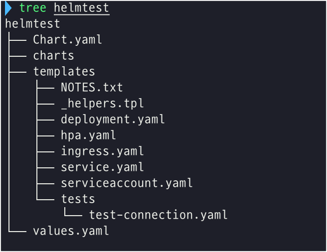 Chart는 k8s에서 구동하기 위한 Application을 구성하기 위한 모든 패키지 정보가 들어있고 기본적으로 YAML 파일의 형태를 따른다.