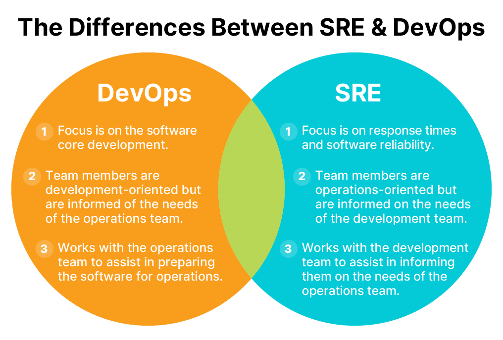 해외 게시물을 읽다가 Devops 와 SRE에 대한 차이점을 나타내는 아래의 그림을 보았다.