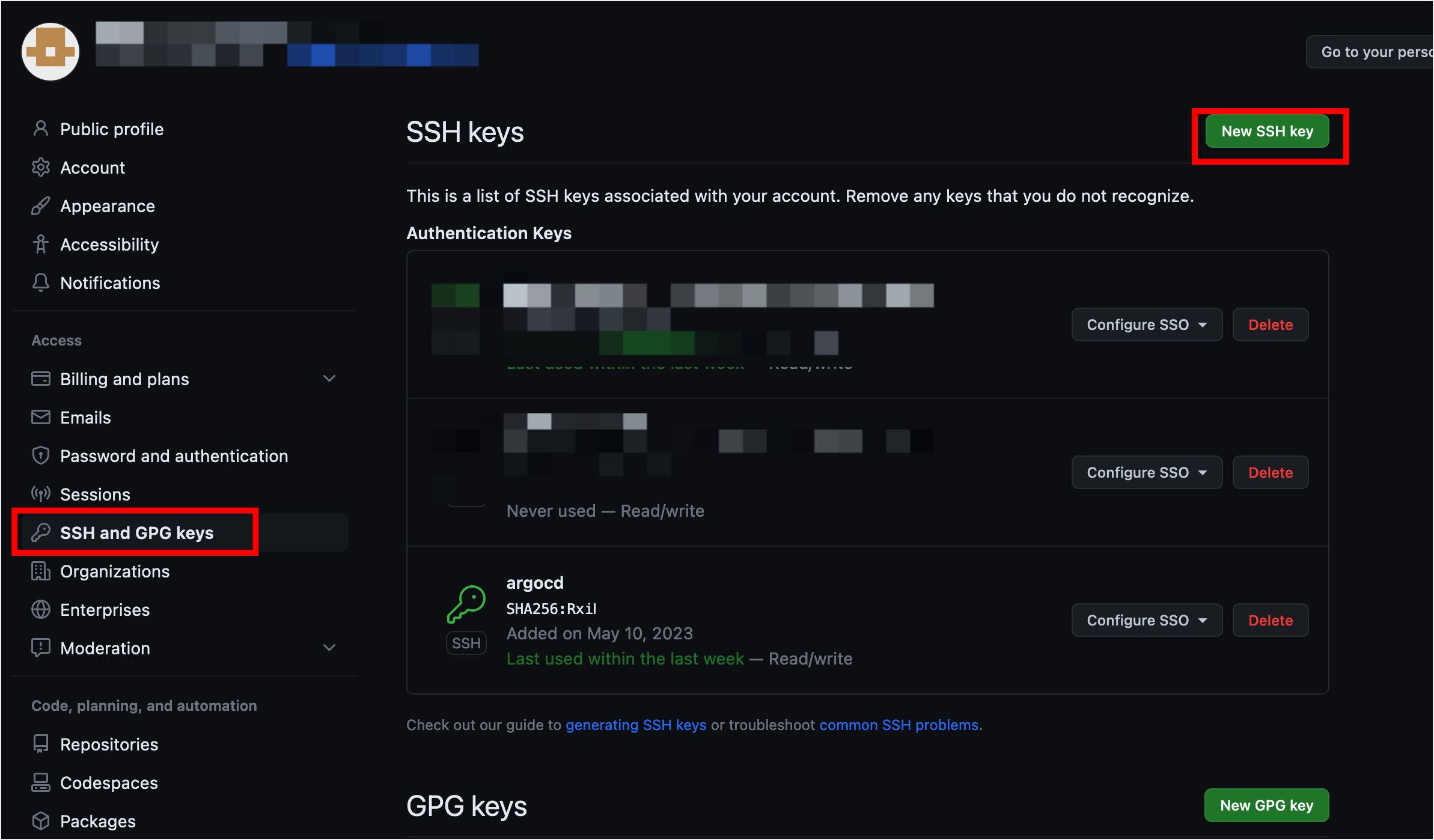그래서 가장 먼저 Github SSH키를 등록하는 것이 선행되어야 한다. 그 방법은 아래와 같다.