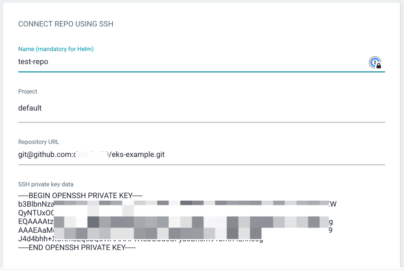 - 아래 내용은 SSH Private key를 가지고 Repo URL에 접근하겠다는 설정이다.