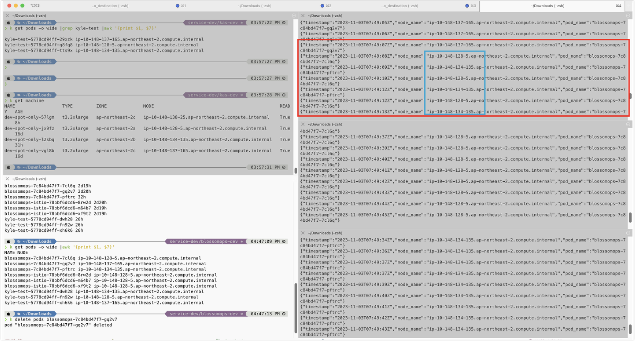 - 그래서 165번 c Zone에 위치한 blossomops pod에서 응답을 준다.