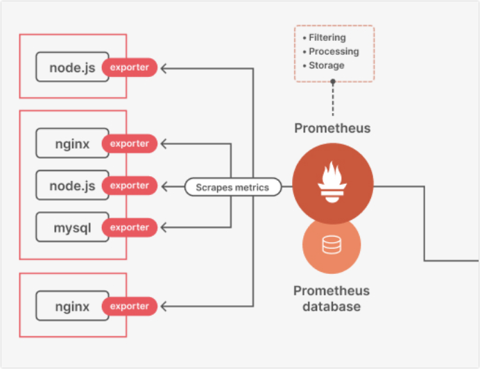- Server : 실제 Metrics을 수집하는 서버이고, 일반적으로 Prometheus를 뜻한다.