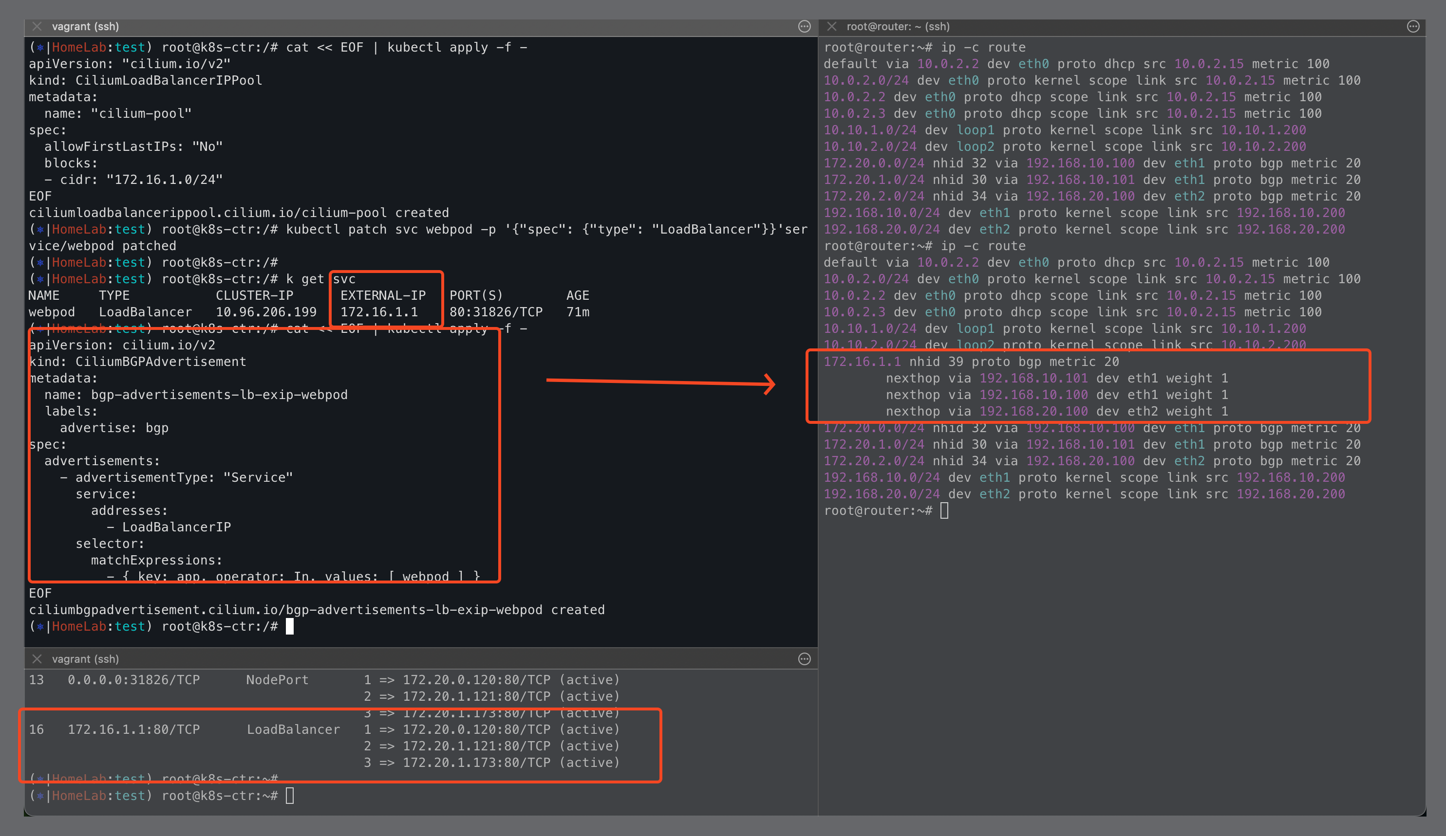 65001 tor-switch-ipv4-Service-webpod-test-LoadBalancerIP export 192.168.10.200/32 172.16.1.1/32 (32..32) accept