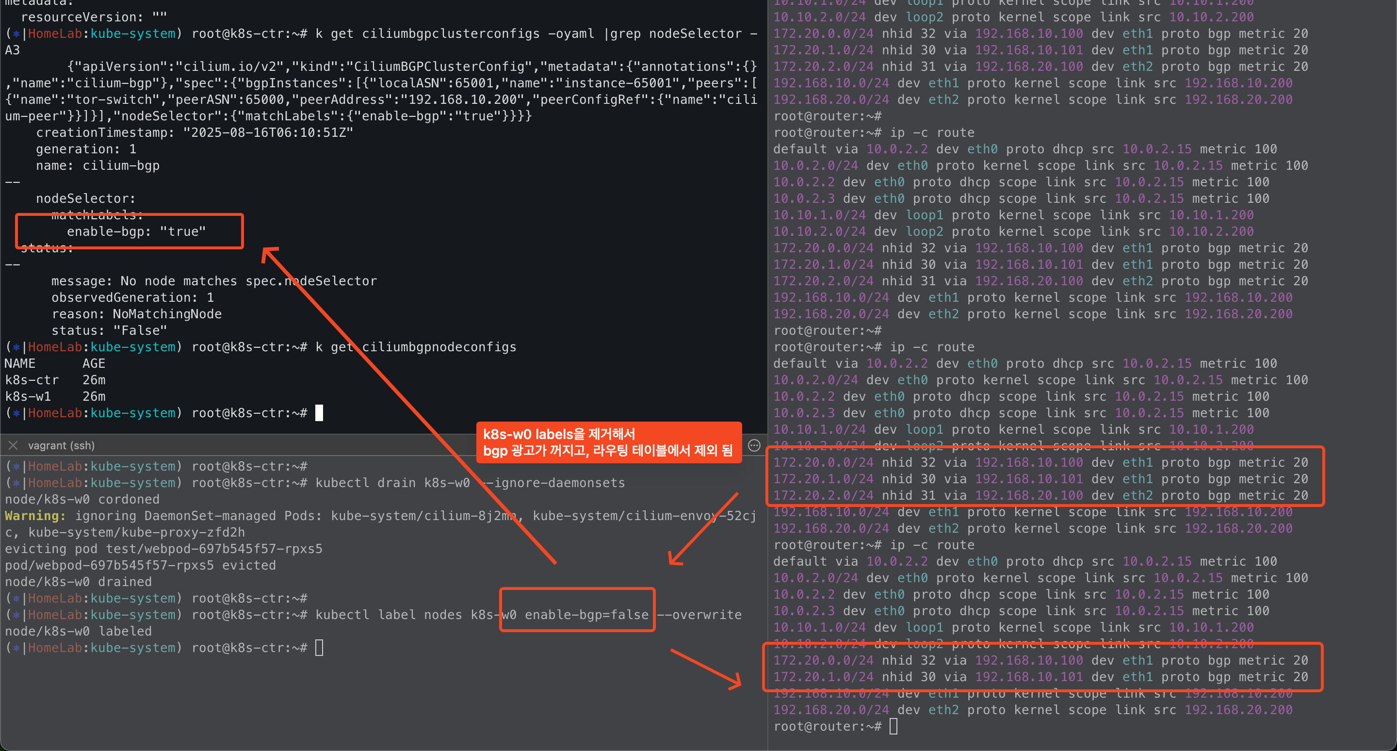 하지만 이번 주차에는 라우터 노드에 BGP 업데이트를 위한 frr 에이전트가 추가로 설치되어 있다.