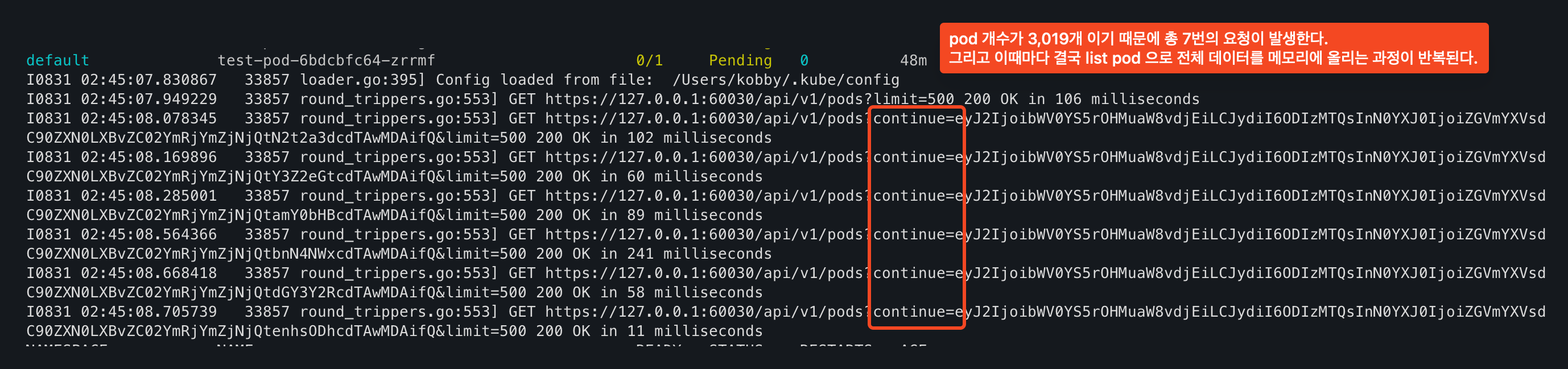 - 실제로 운영중인 클러스터에서는 약 10,000개의 pod이 있는데 조회해보면 응답 크기가 약 170MB 정도 된다.