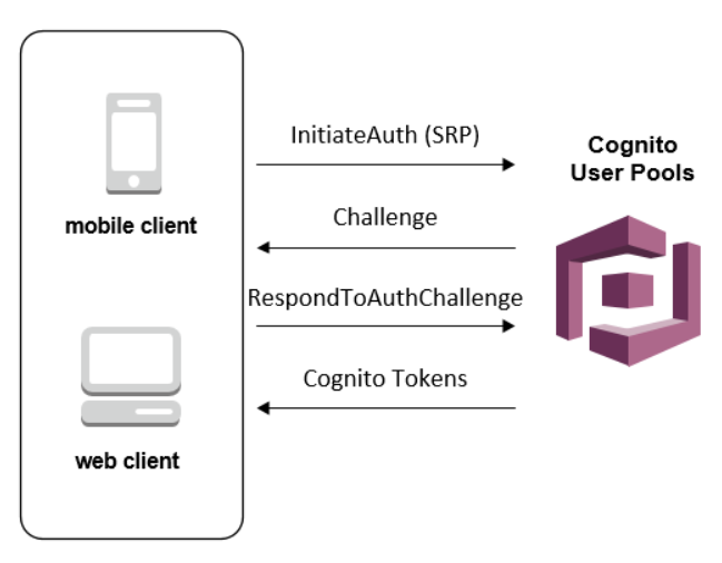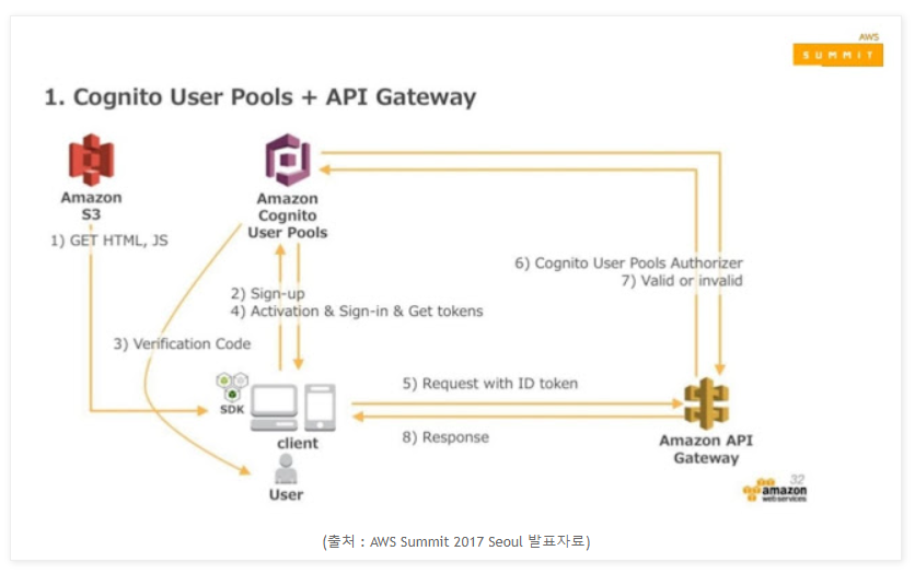 전체적인 AWS Cognito 서비스의 사용 예시는 다음과 같다.