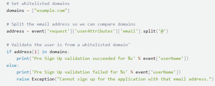 1) event reuqest userattributes email list에서 @을 기준으로 잘라서 address 변수에 설정