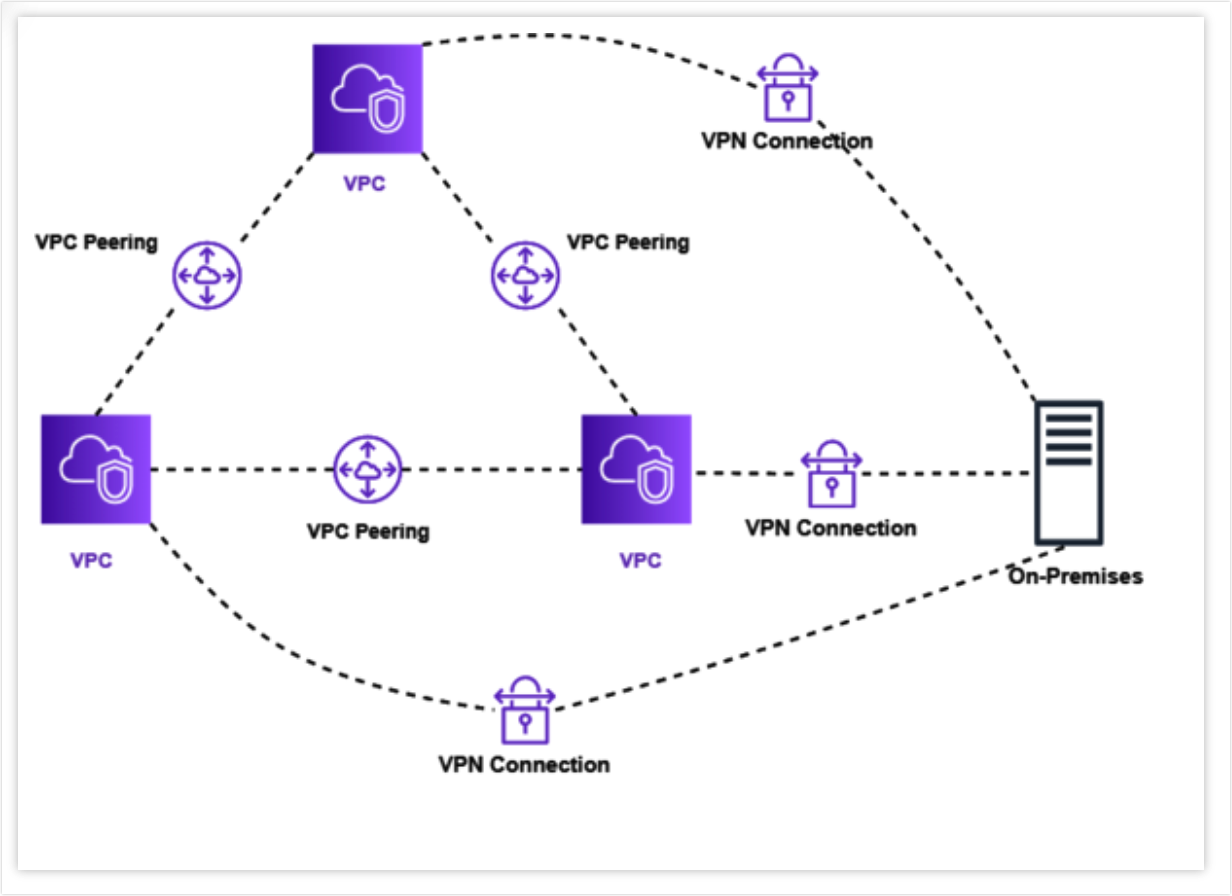 VPC Peering은 Mesh 형태로 연결하기 때문에 VPC가 많아지면 많아질수록 복잡한 구조이고,